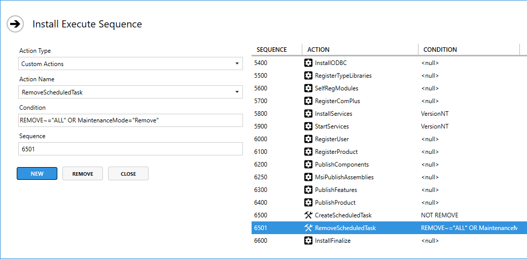 - Condition: REMOVE~=“ALL” OR MaintenanceMode=“Remove”